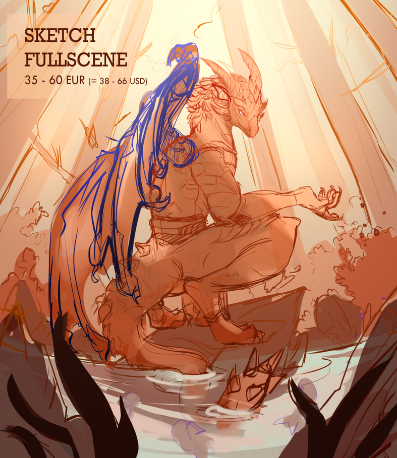 > I'll draw : feral, human, furry, urban and rural sceneries, animation, suggestive and light NSFW, blood and light violence